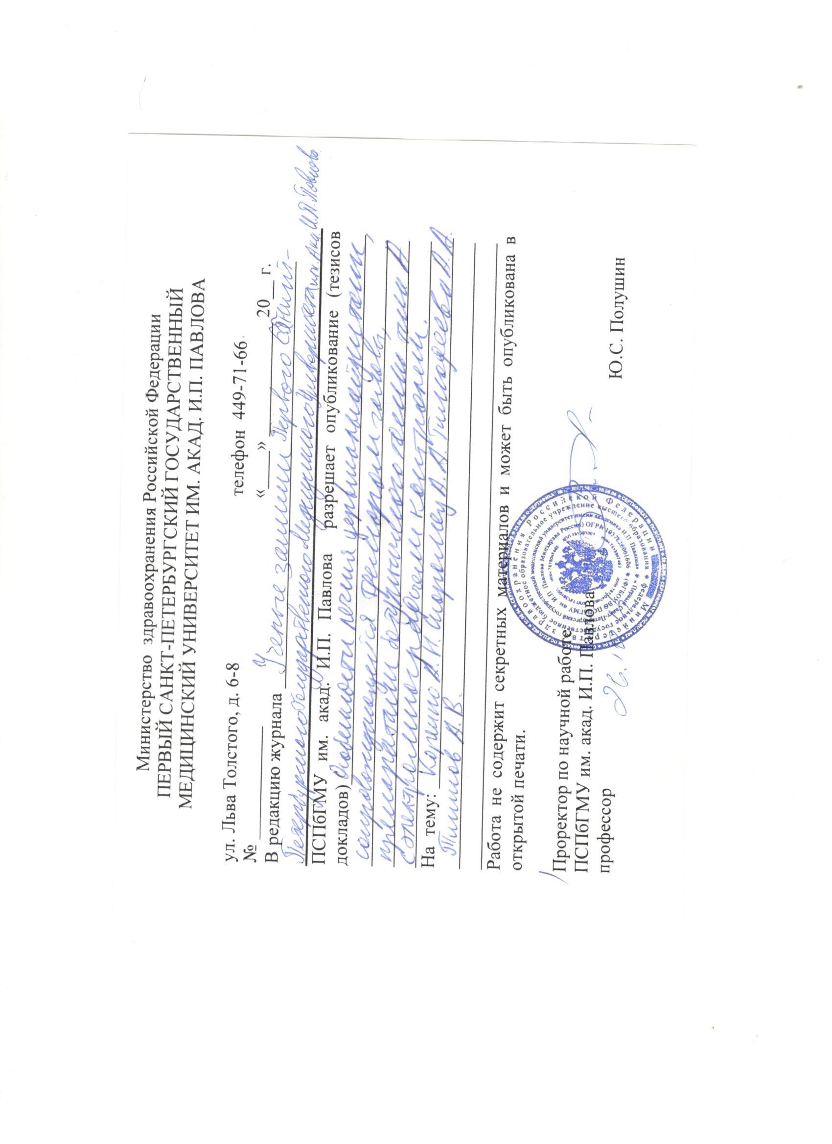 Первый Санкт-Петербургский Государственный Медицинский Университет им. акад. И.П. Павлова