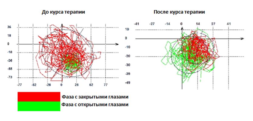 2. Рисунок 1. Статокинезиограммы до и после курса терапии
